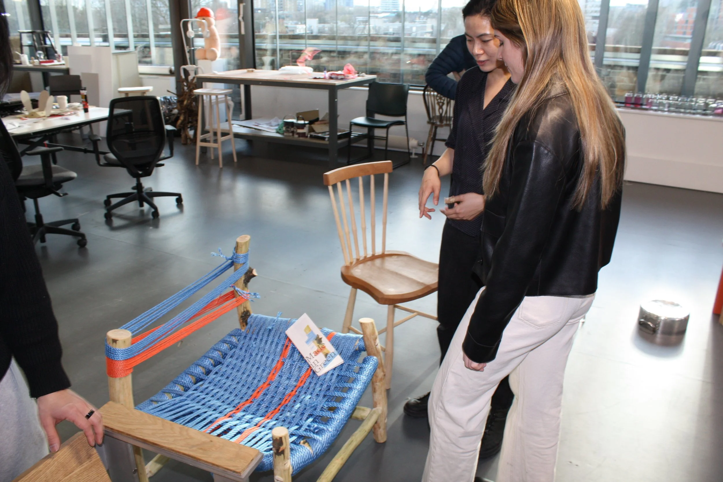 Made in Green is a chair made from green wood and polypropylene rope, designed in response to a brief on regenerative materials.